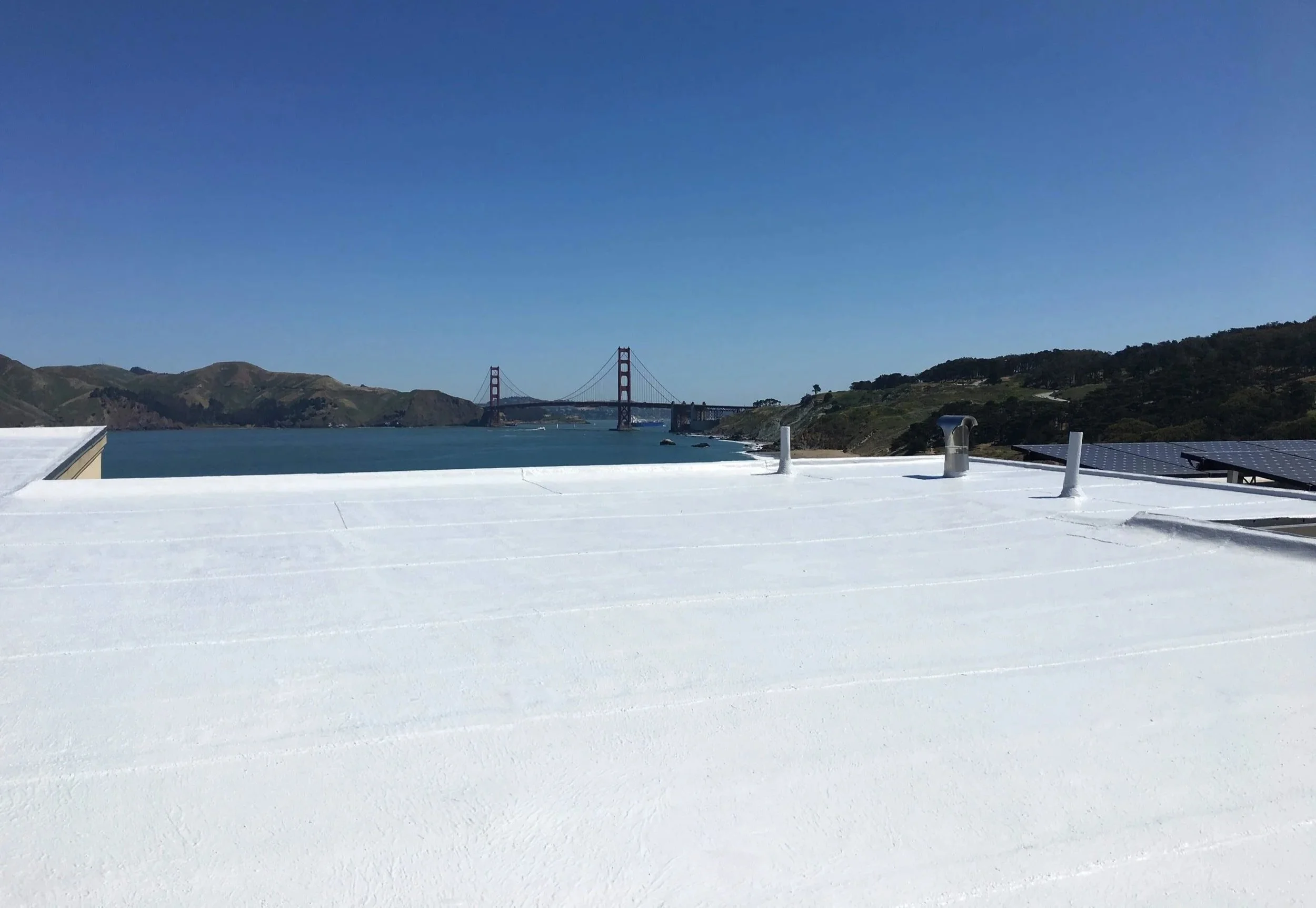 Even in foggy San Francisco, UV radiation breaks down unprotected roofing materials over time. Cool roof coatings and UV-resistant cap sheets help protect flat roofs from sun damage.